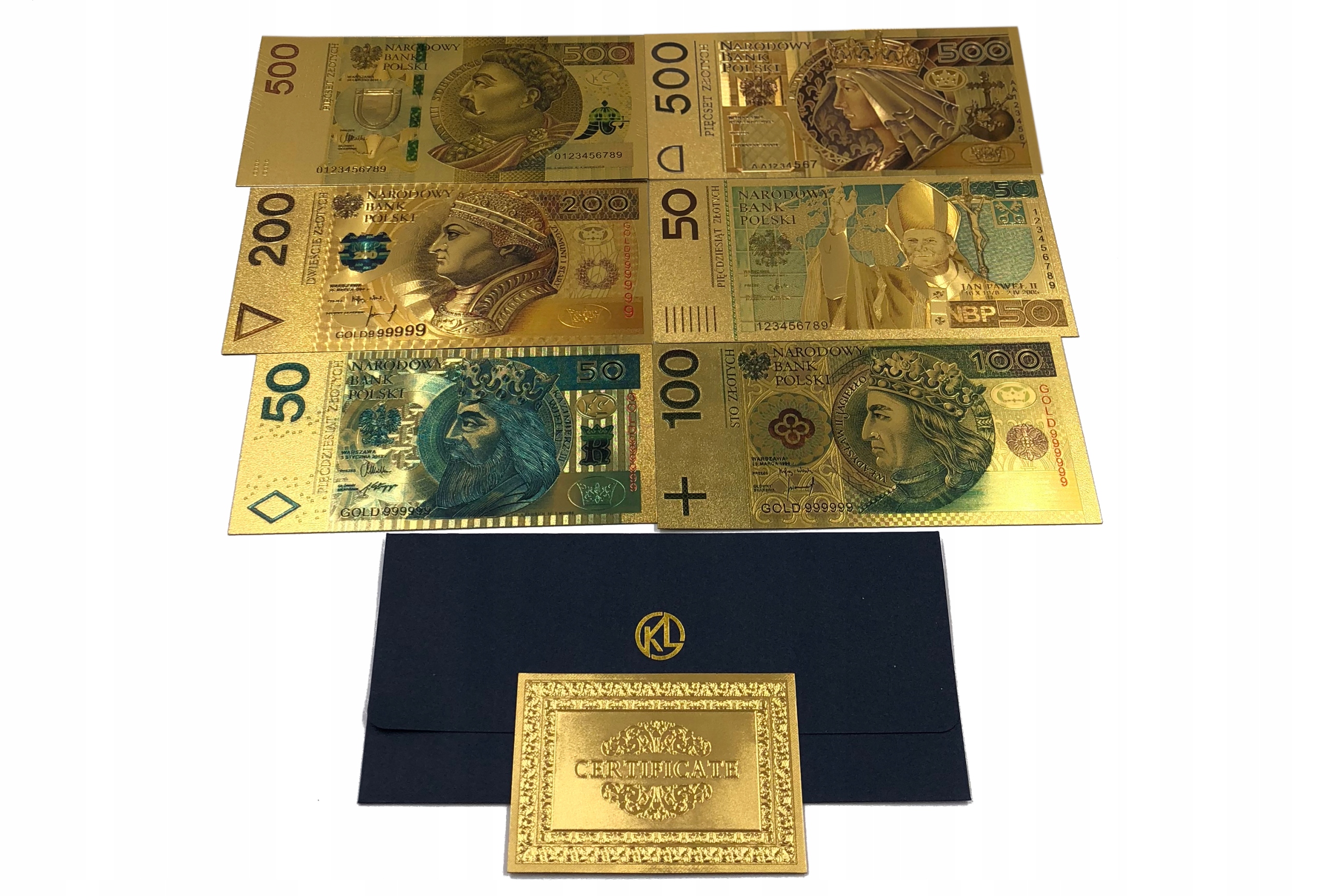 Nominał: 10 zł, 20zł, 50zł, 50zł WERSJA LIMITOWANA Z PAPIEŻEM JANEM PAWŁEM II, 100zł, 200zł, 500zł, 500zł WERSJA Z KRÓLOWĄ JADWIGĄ