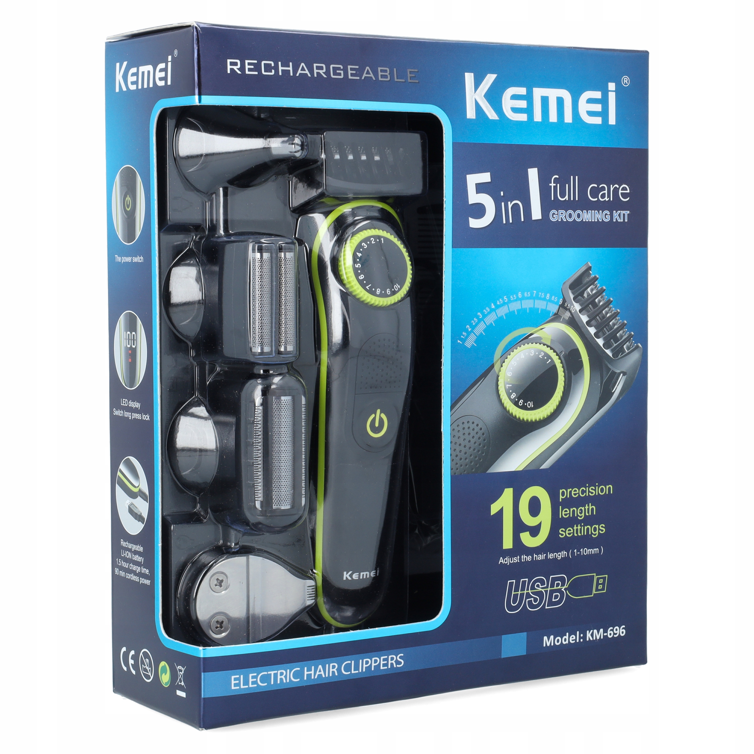 BEZPRZEWODOWA MASZYNKA TRYMER DO WŁOSÓW ZESTAW 5W1 KEMEI BARBER USB KM-696