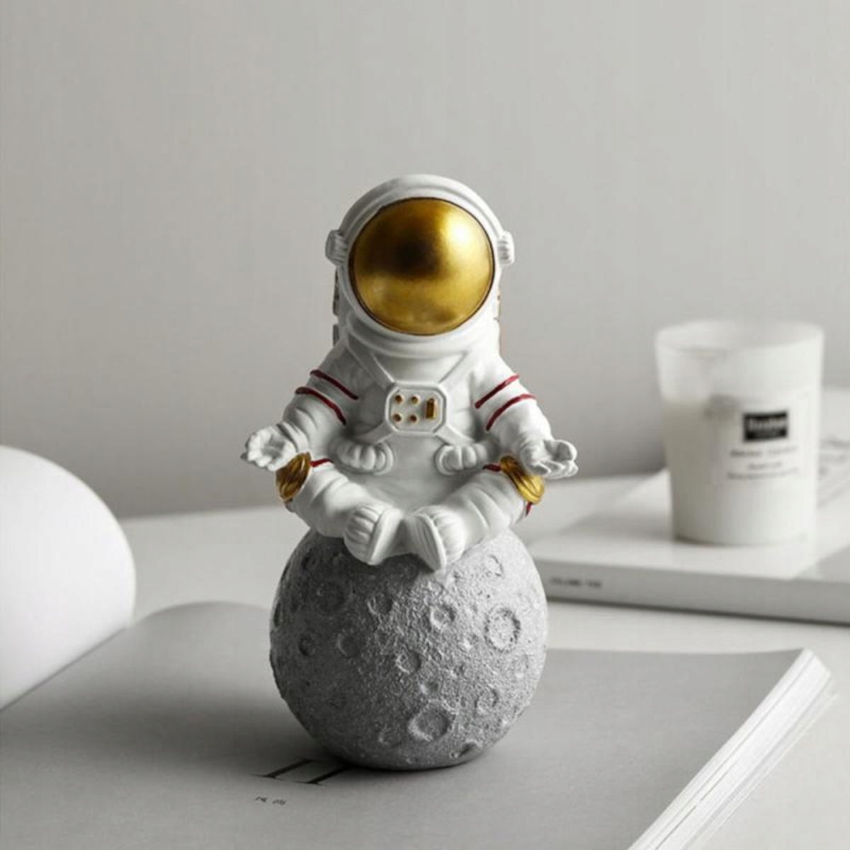 - Unikalna dekoracja - ceramiczna statua astronauta, to połączenie białego i złotego, które będzie wyjątkową dekoracją do wnętrza biura domowego, salonu, sypialni, sali lekcyjnej i kosmicznej dekoracji.