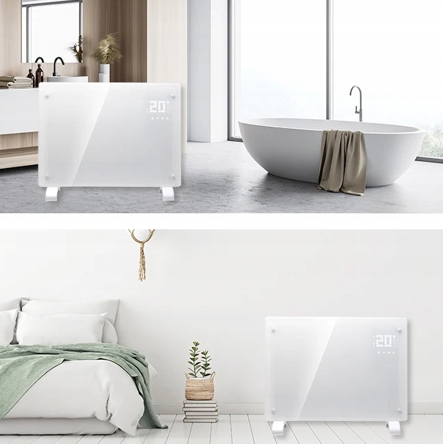- Elegancka szklana obudowa: Błyszcząca powierzchnia sprawia, że grzejnik wygląda jak element dekoracyjny. Idealnie komponuje się zarówno z nowoczesnymi, jak i klasycznymi aranżacjami wnętrz.