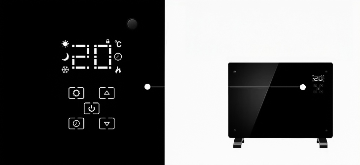 - Precyzyjna regulacja: Wbudowany panel dotykowy z czytelnym wyświetlaczem LED umożliwia precyzyjne ustawienie temperatury co do stopnia. Możesz dopasować ciepło do swoich indywidualnych potrzeb.