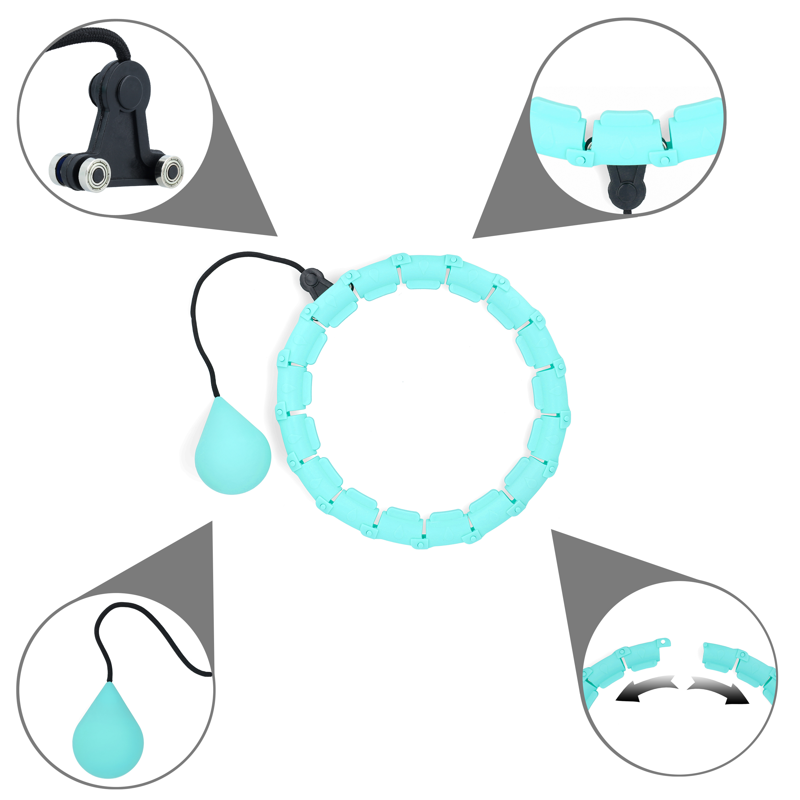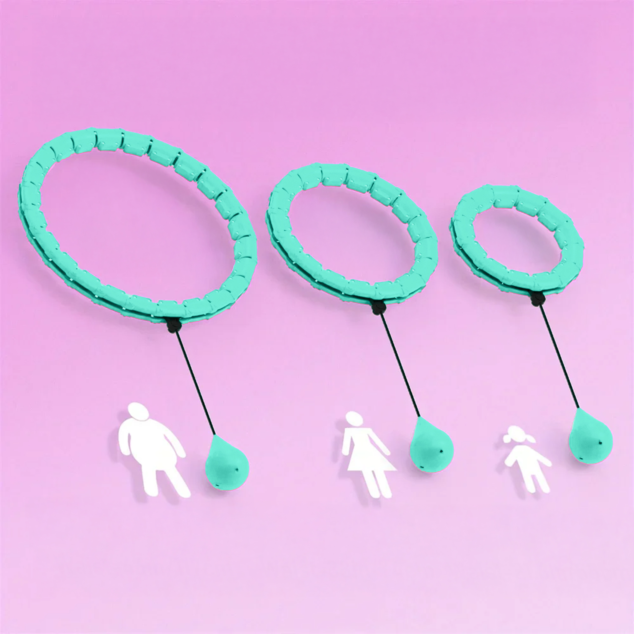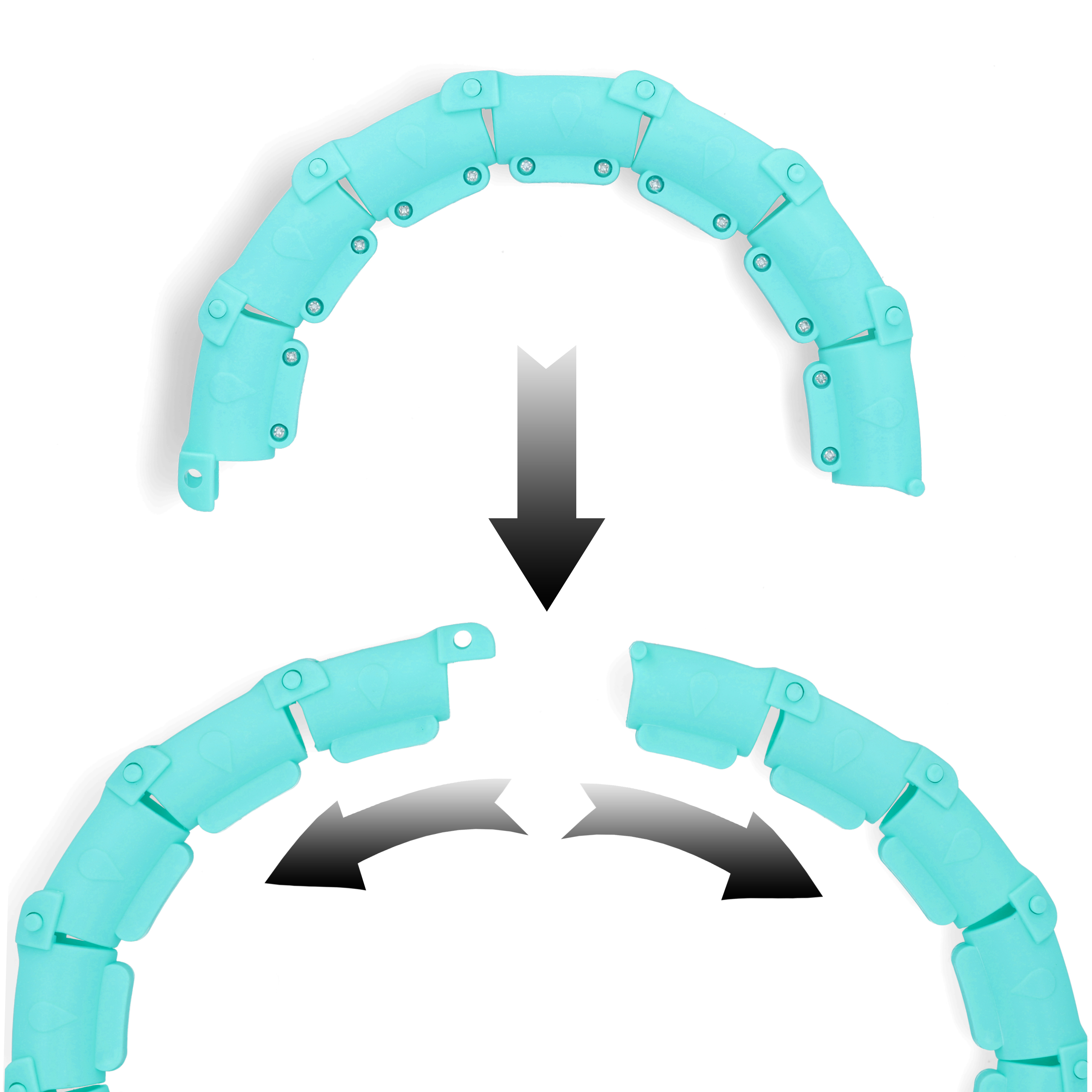 - Segmentowa konstrukcja – regulowana średnica Obręcz składa się z kilku segmentów, które można w łatwy sposób łączyć i rozłączać. Pozwala to dopasować rozmiar hula hopu do talii użytkownika, dzięki czemu trening jest bardziej ergonomiczny i komfortowy.