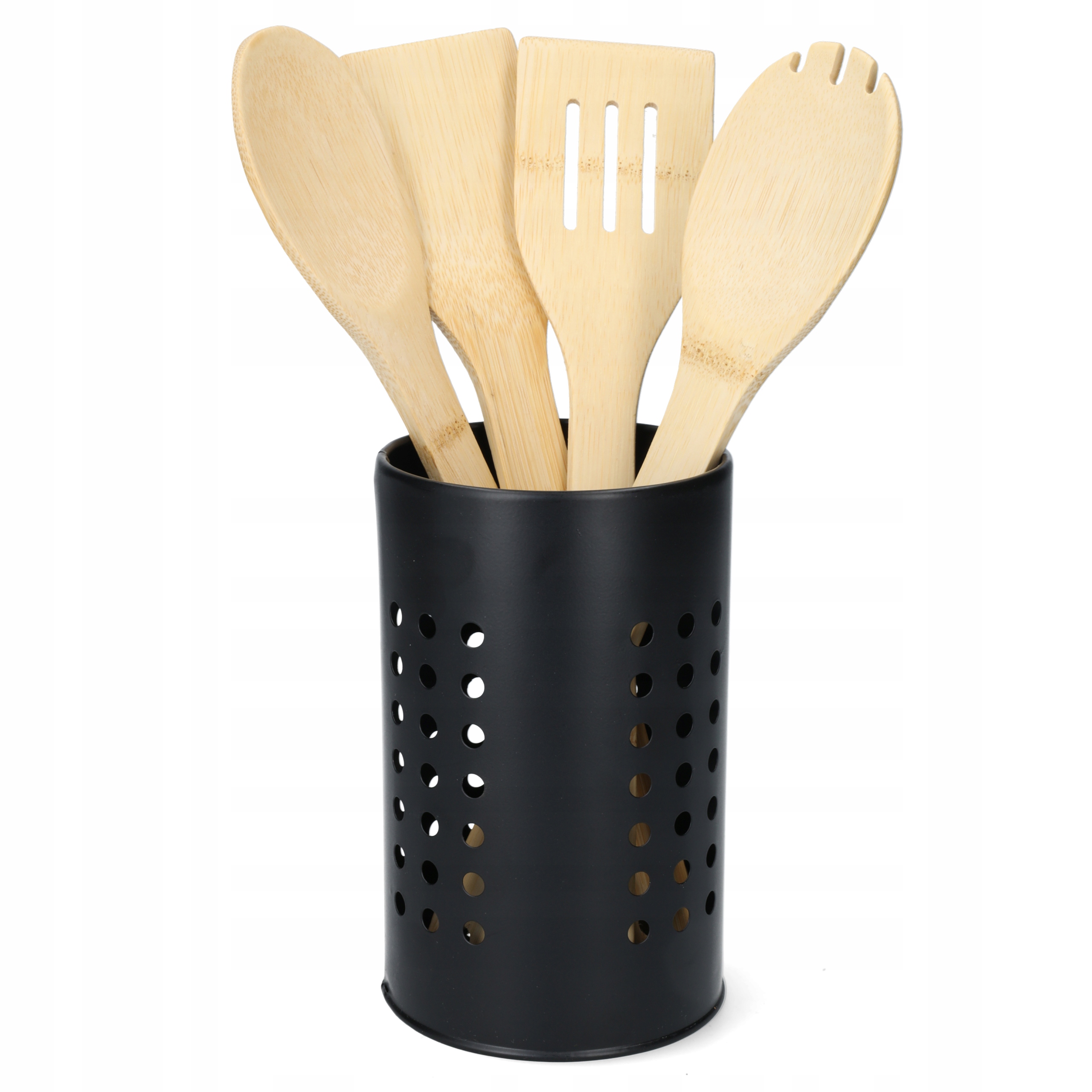 Kubek na Sztućce z Drewnianymi Utensyliami Organizer Ociekacz Metalowy