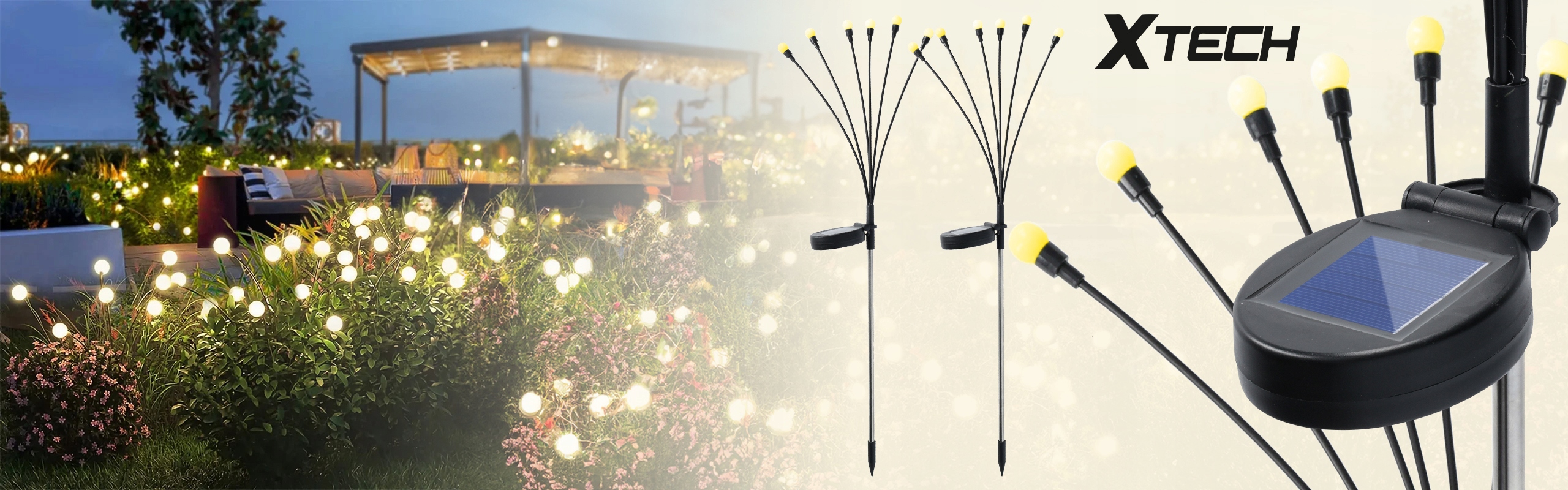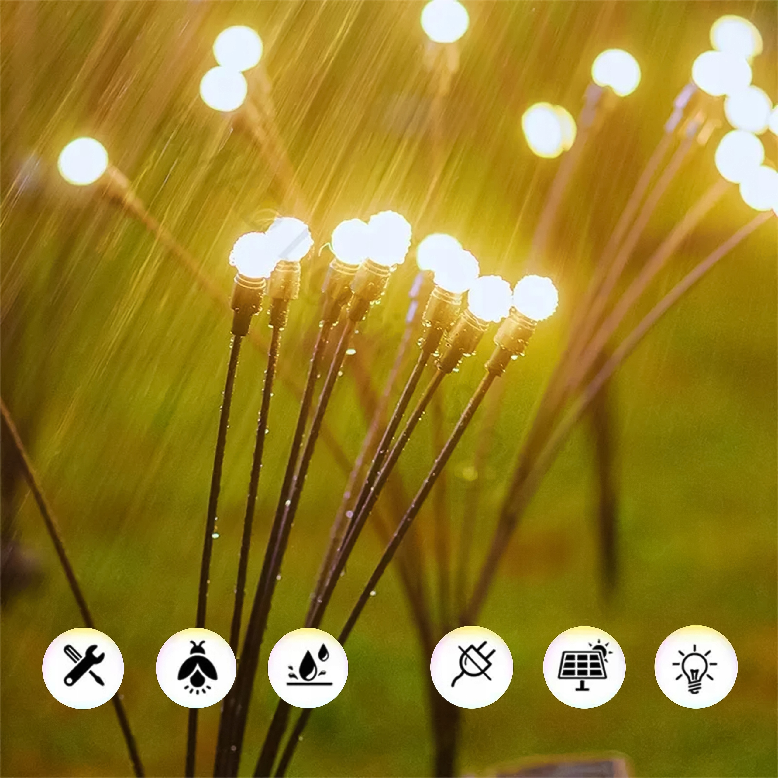 Lampki są wyposażone w panele słoneczne, które w ciągu dnia ładowane są energią słoneczną, a po zmroku automatycznie się włączają, zapewniając delikatne oświetlenie przez całą noc.