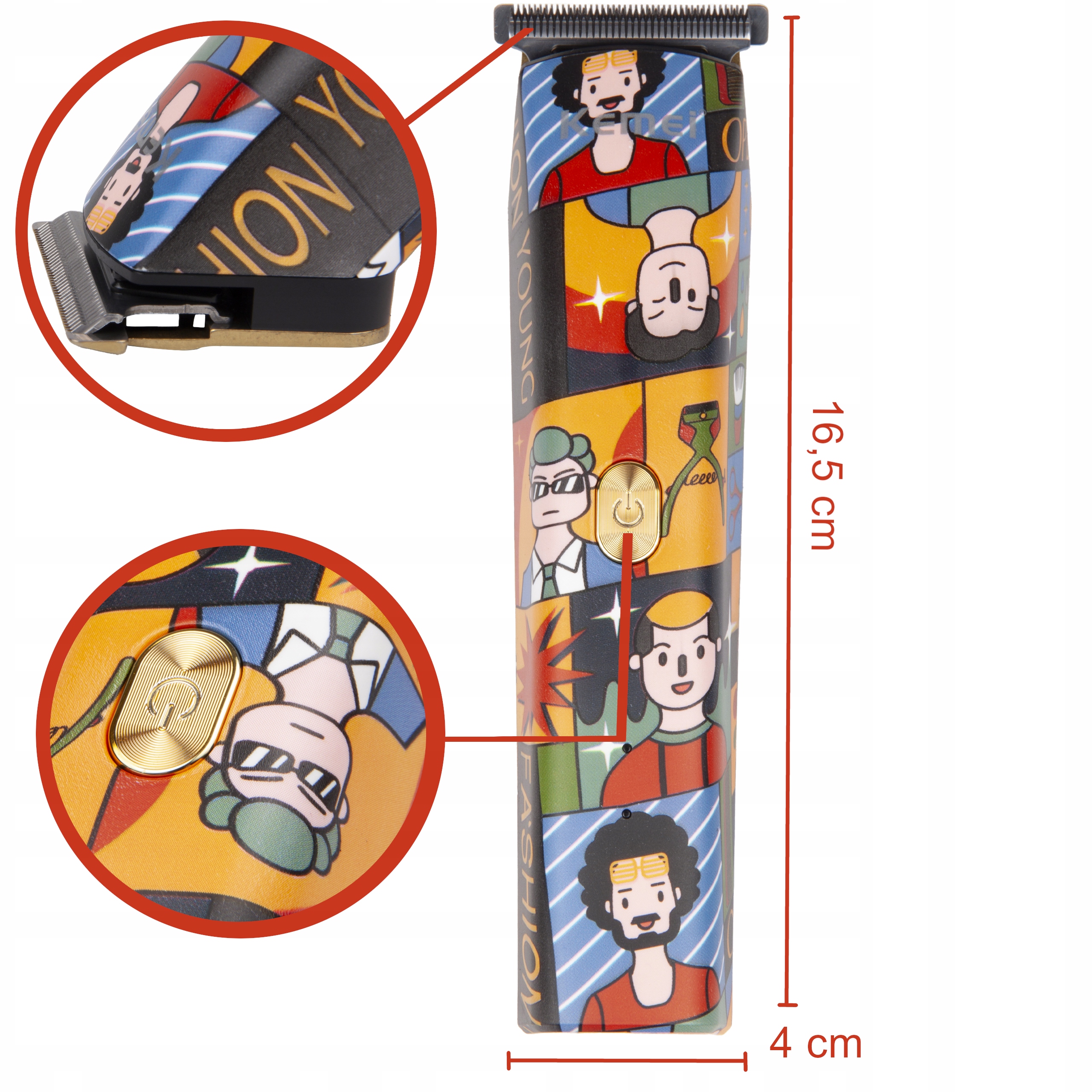 Skonfigurowana z samoostrzącym się stalowym ostrzem i zębnikiem o zerowej przerwie, idealna do strzyżenia wzorów oraz innych drobnych kształtów. Bez wątpienia sprawdzi się również przy strzyżeniu łysiny i brody, przycinając je dokładnie i wystarczająco gładko bez podrażnień.