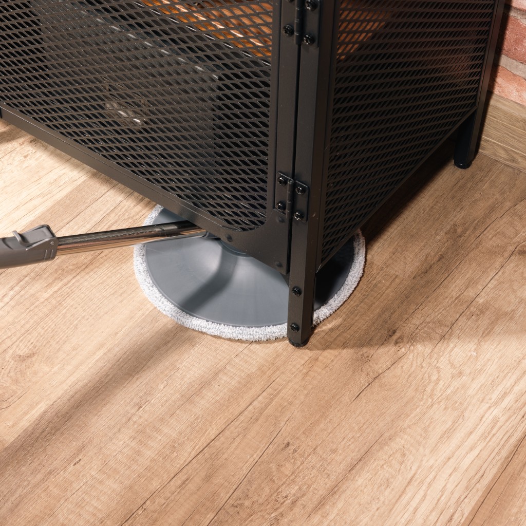 Duża, okrągła nakładka z miękkiej mikrofibry skutecznie zbiera kurz, brud i płyny, nie pozostawiając smug. Nadaje się do każdego rodzaju powierzchni – paneli, kafelków, marmuru czy drewna.