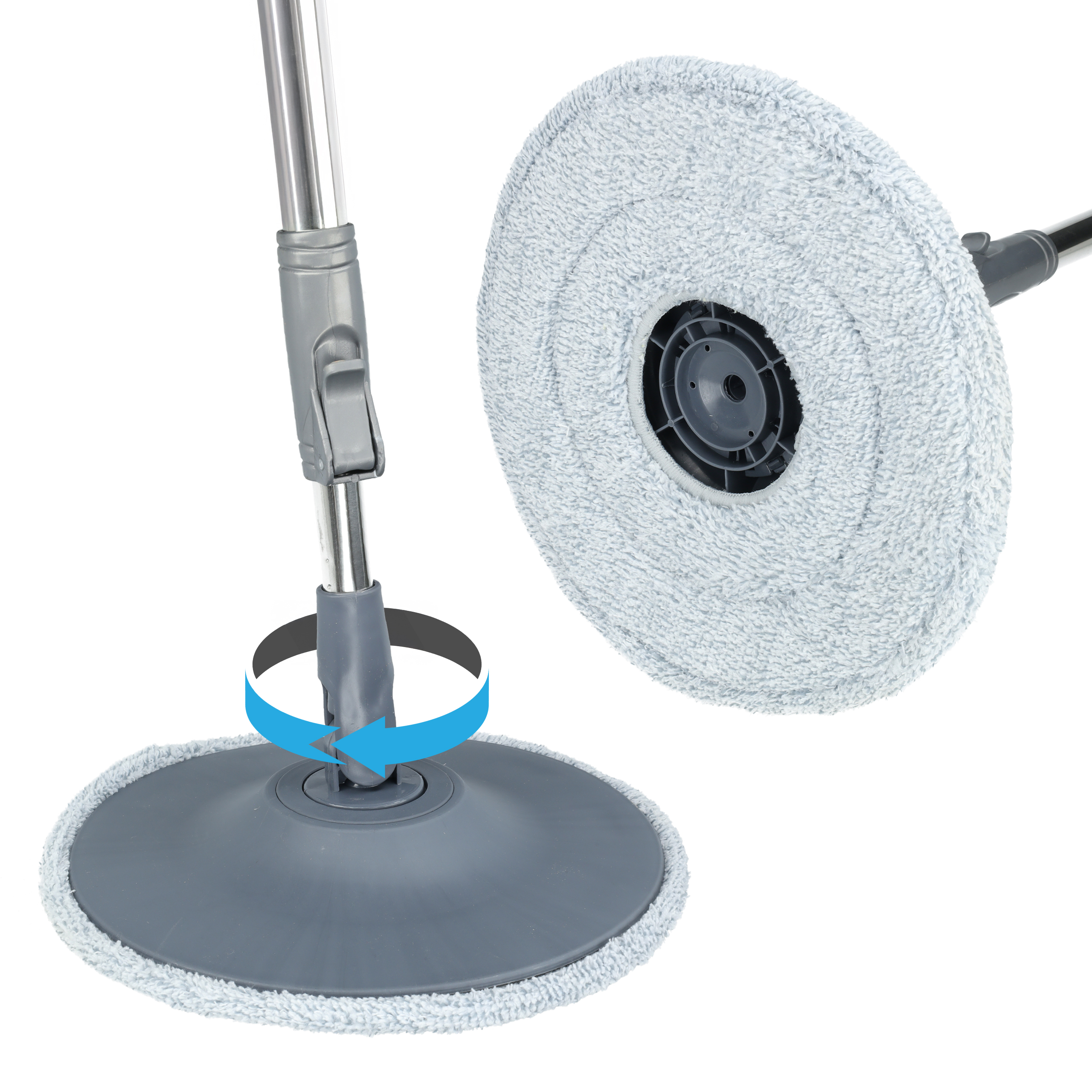 Nowoczesna, płaska i rotacyjna końcówka mopa pozwala na dotarcie do trudno dostępnych miejsc, takich jak narożniki, przestrzenie pod meblami czy listwy przypodłogowe. Głowica obraca się w pełnym zakresie, umożliwiając płynne manewrowanie.