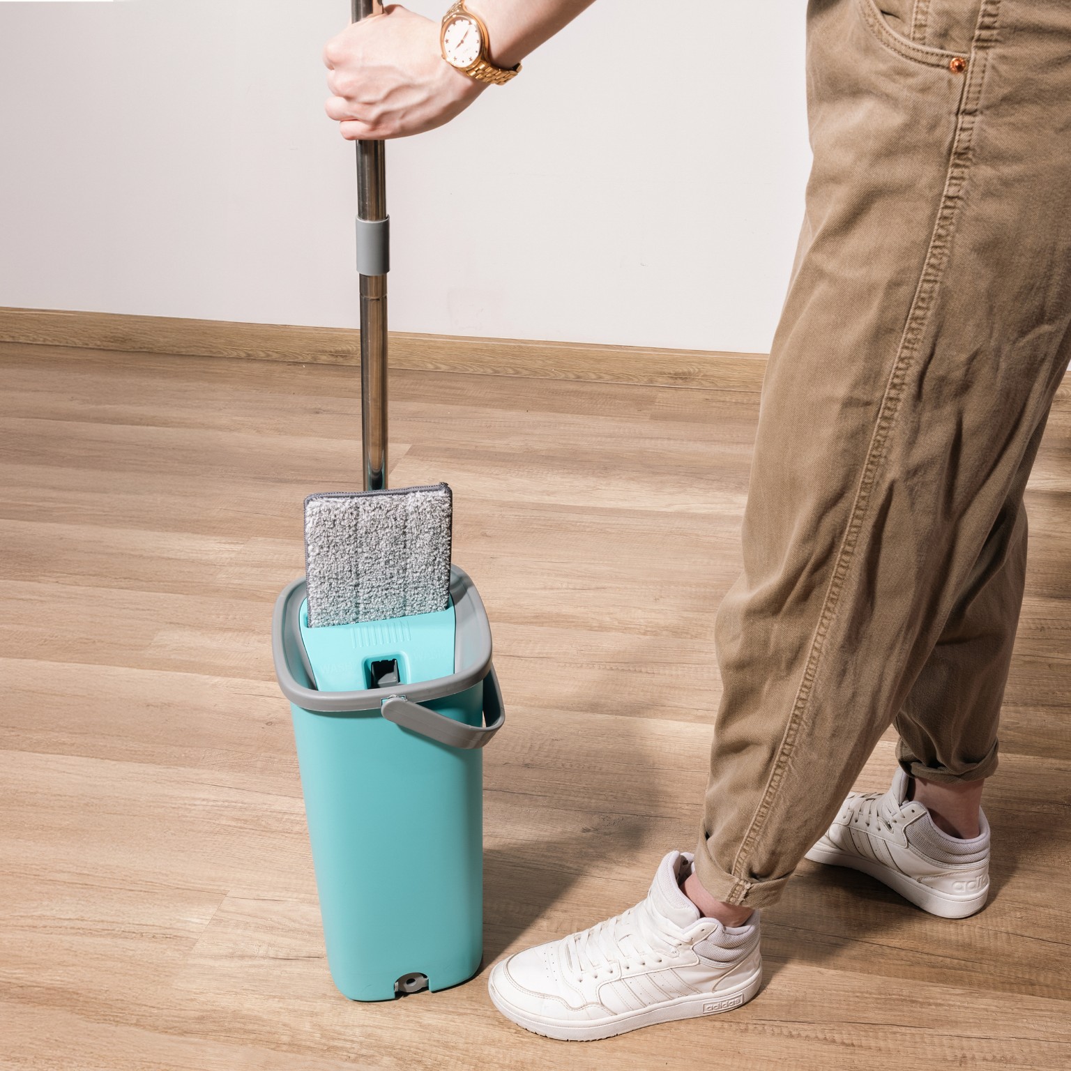 - Dzięki dwukomorowemu wiadru z wyciskaczem oraz wysokiej jakości mikrofibrowej nakładce, utrzymanie czystości w domu staje się prostsze i bardziej higieniczne.