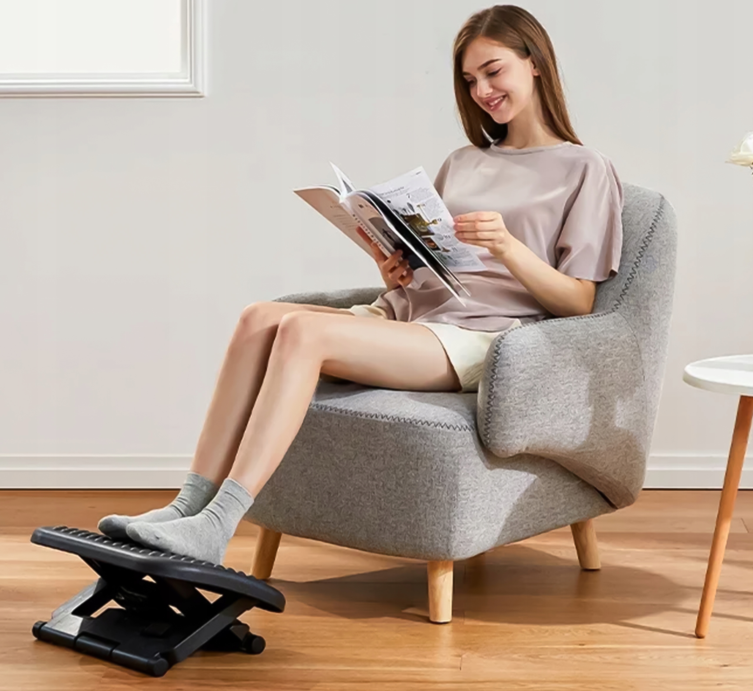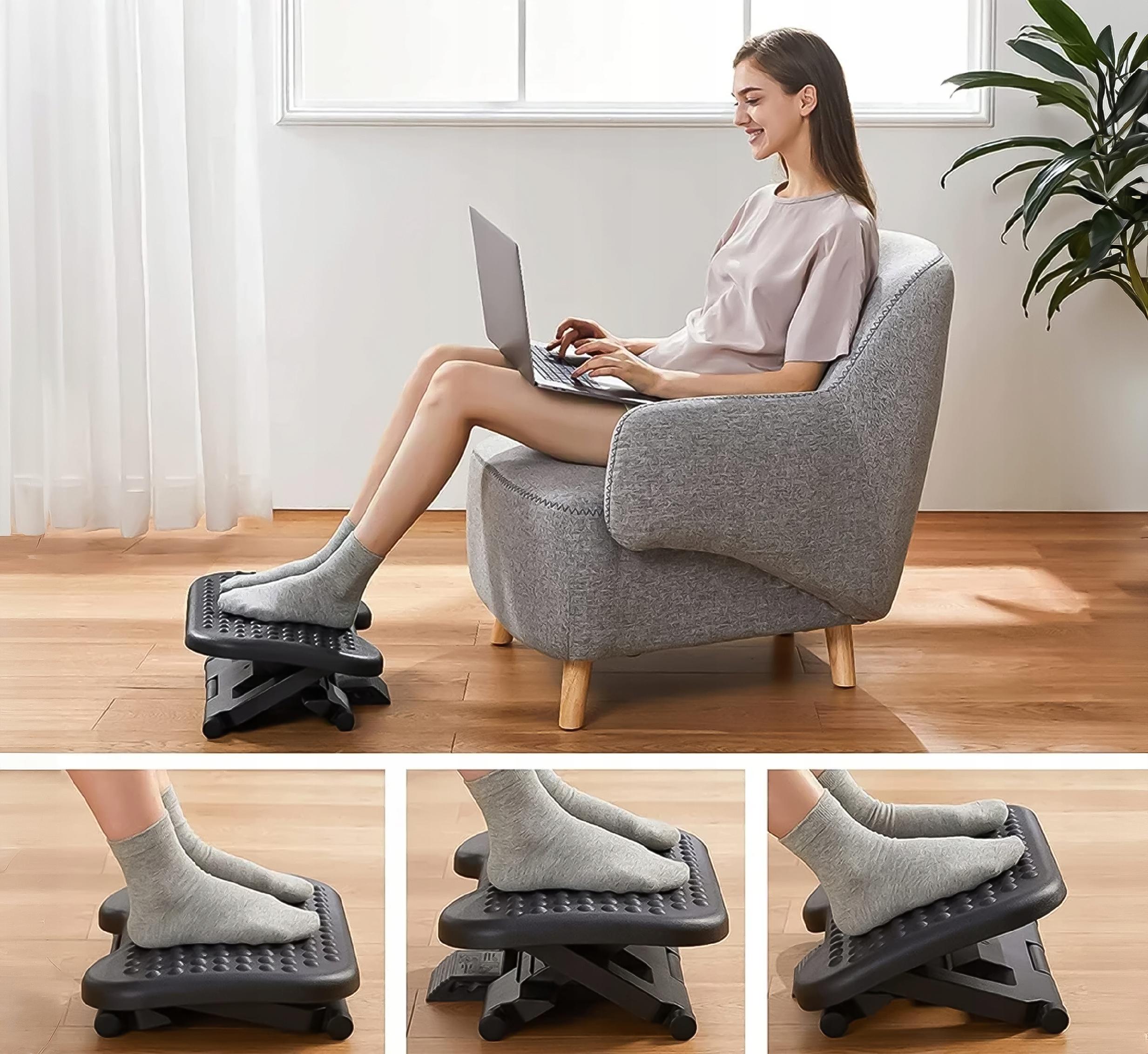 Używanie podnóżka pomaga w poprawie krążenia krwi w nogach, co zmniejsza uczucie zmęczenia i obrzęki.