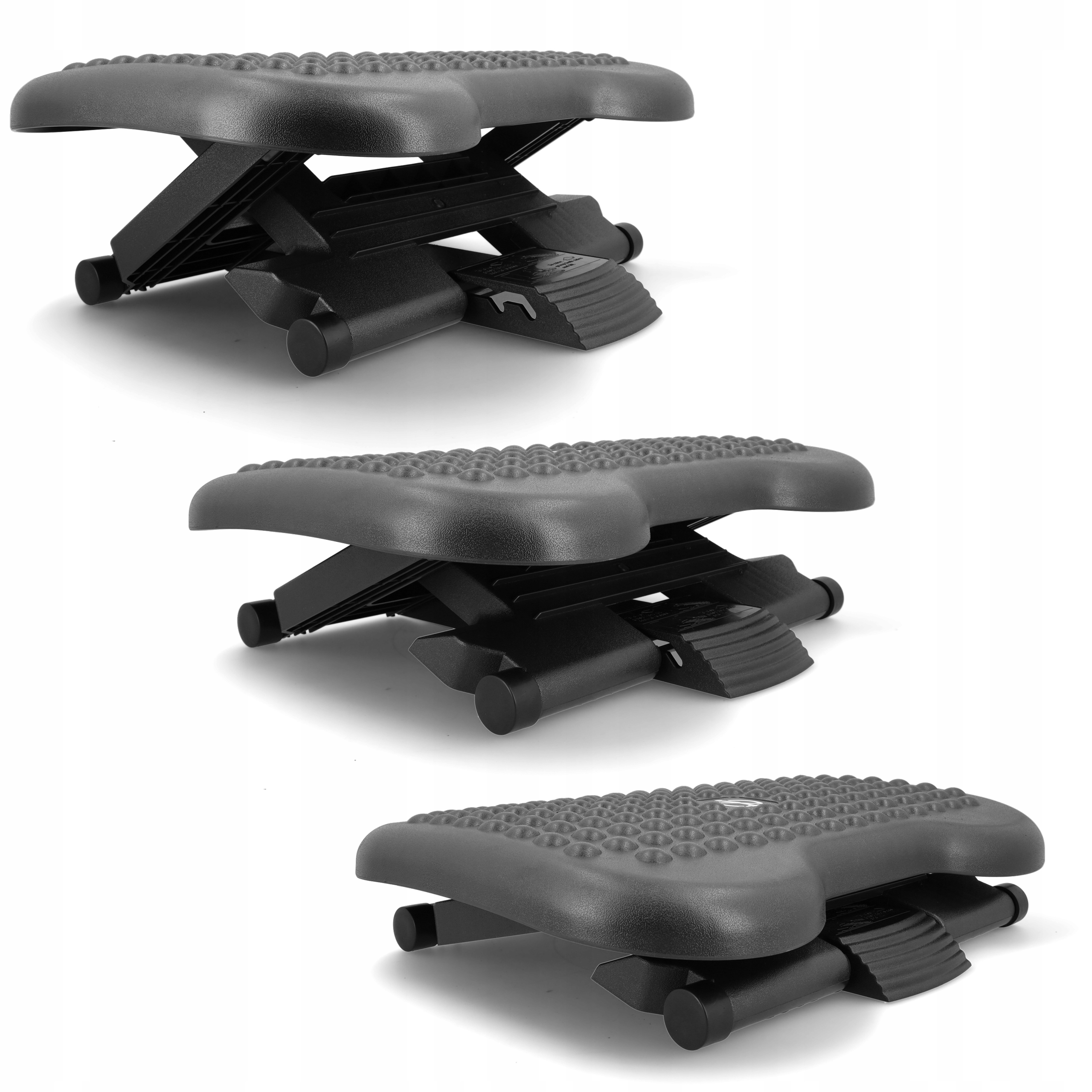 Specjalnie wyprofilowana antypoślizgowa powierzchnia zapewnia wygodne ułożenie stóp, a gumowe nóżki zapobiegają przesuwaniu się podnóżka.