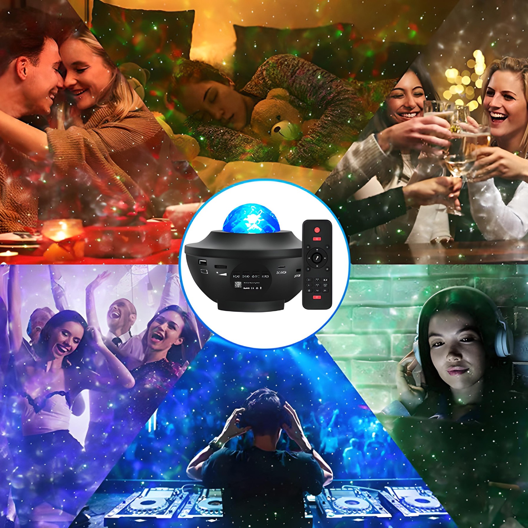 Zanurz się w niezwykłym świecie kolorów, dźwięków i relaksu dzięki wielofunkcyjnemu Projektorowi Gwiazd LED z Głośnikiem Bluetooth. To urządzenie łączy w sobie funkcję projektora świetlnego, odtwarzacza muzyki i pilota zdalnego sterowania, oferując niezapomniane doznania wizualno-dźwiękowe idealne do sypialni, salonu, pokoju dziecięcego lub na romantyczny wieczór.