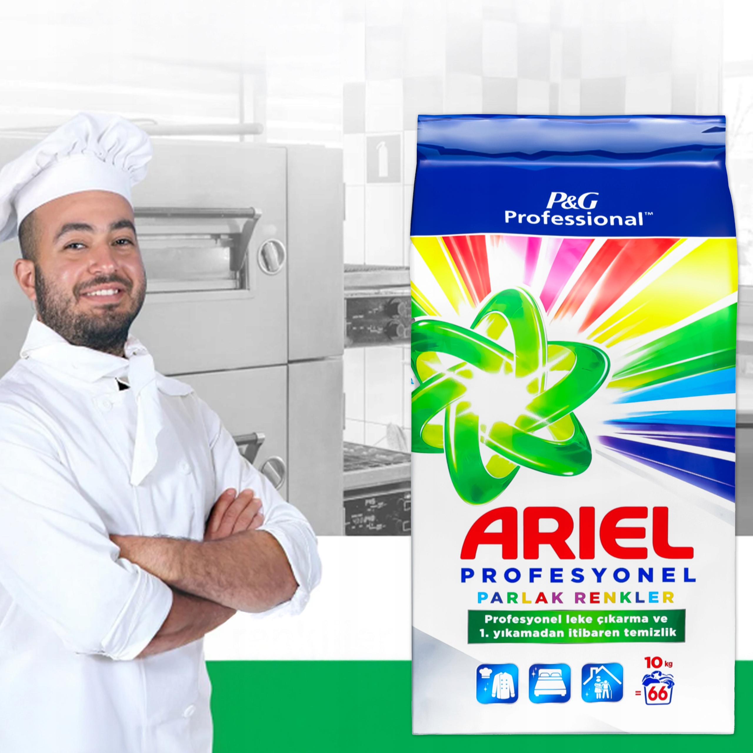 - Ariel Professional Kolor to skuteczny, profesjonalny proszek do prania tkanin kolorowych, stworzony z myślą o wymagających użytkownikach w branży HoReCa oraz pralniach przemysłowych.
