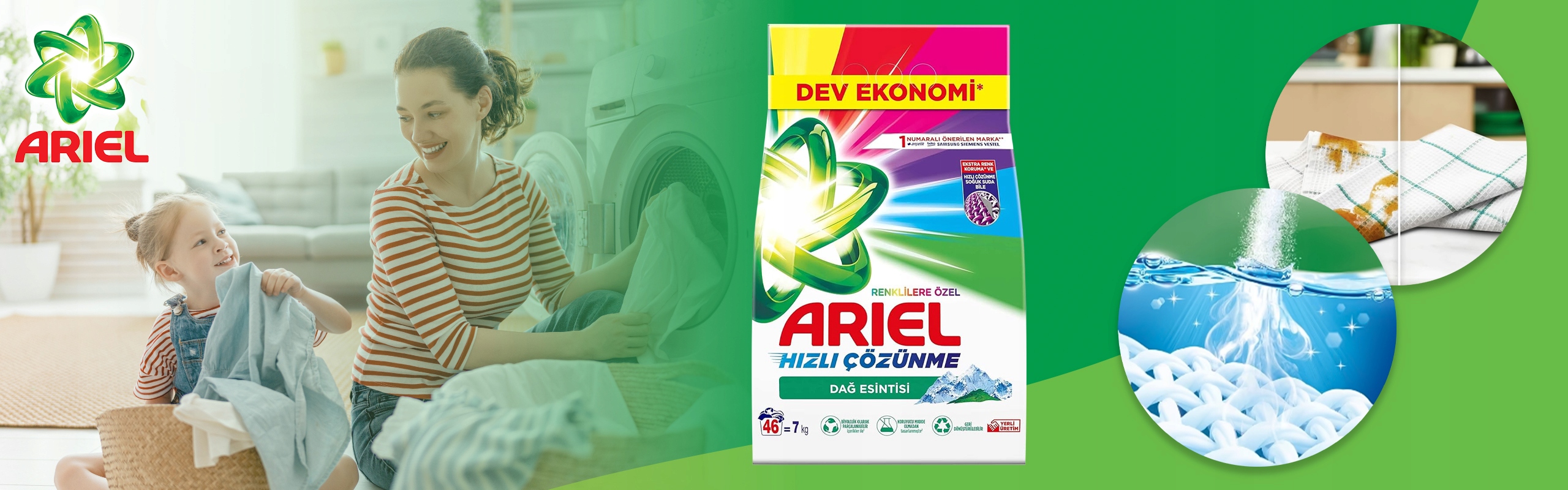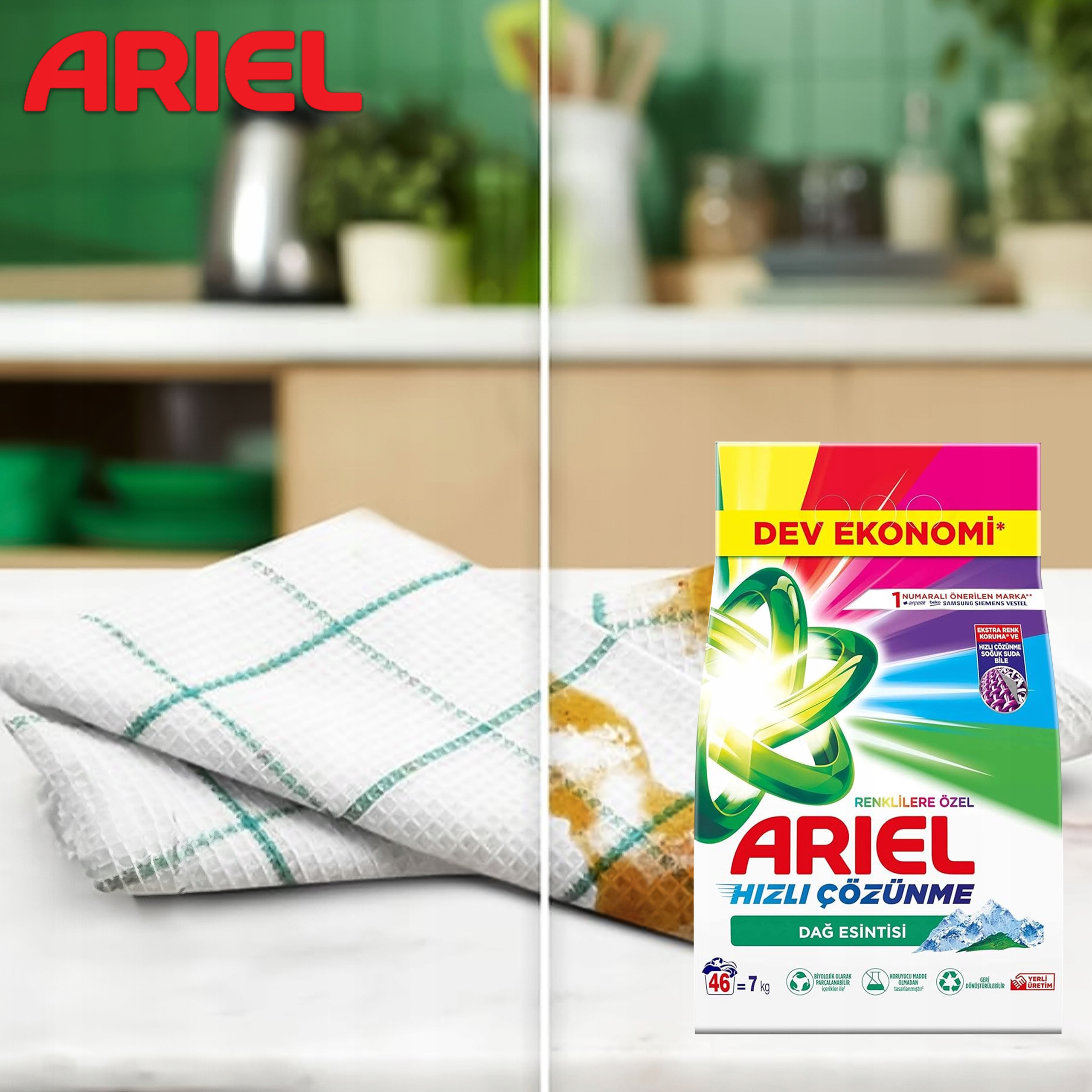 Idealny do codziennego prania, zarówno w niskich, jak i wysokich temperaturach, Ariel jest doskonałym wyborem do każdego rodzaju odzieży.