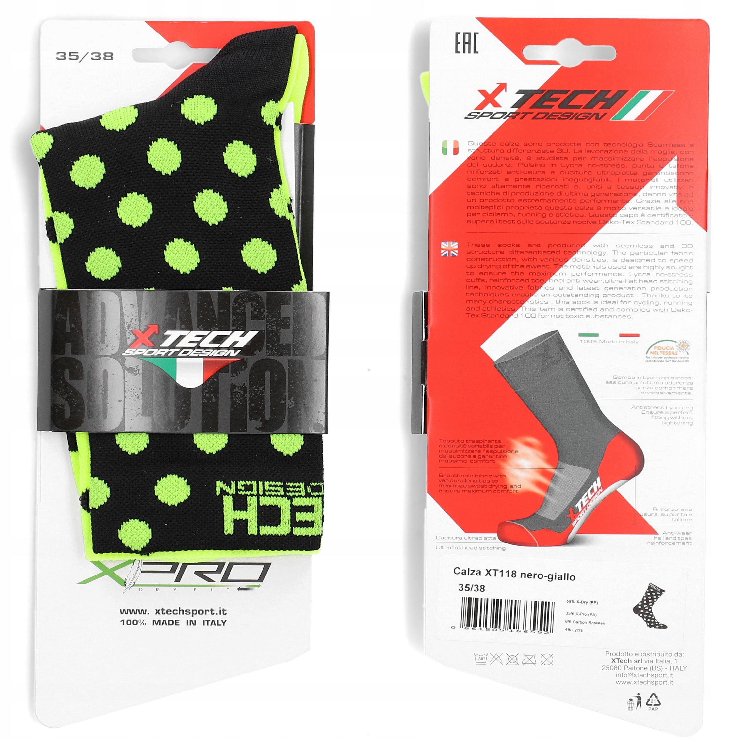 Funkcjonalne skarpety marki XTECH, przystosowane do noszenia w zakresie temperatur od  +10°C do +40°C .