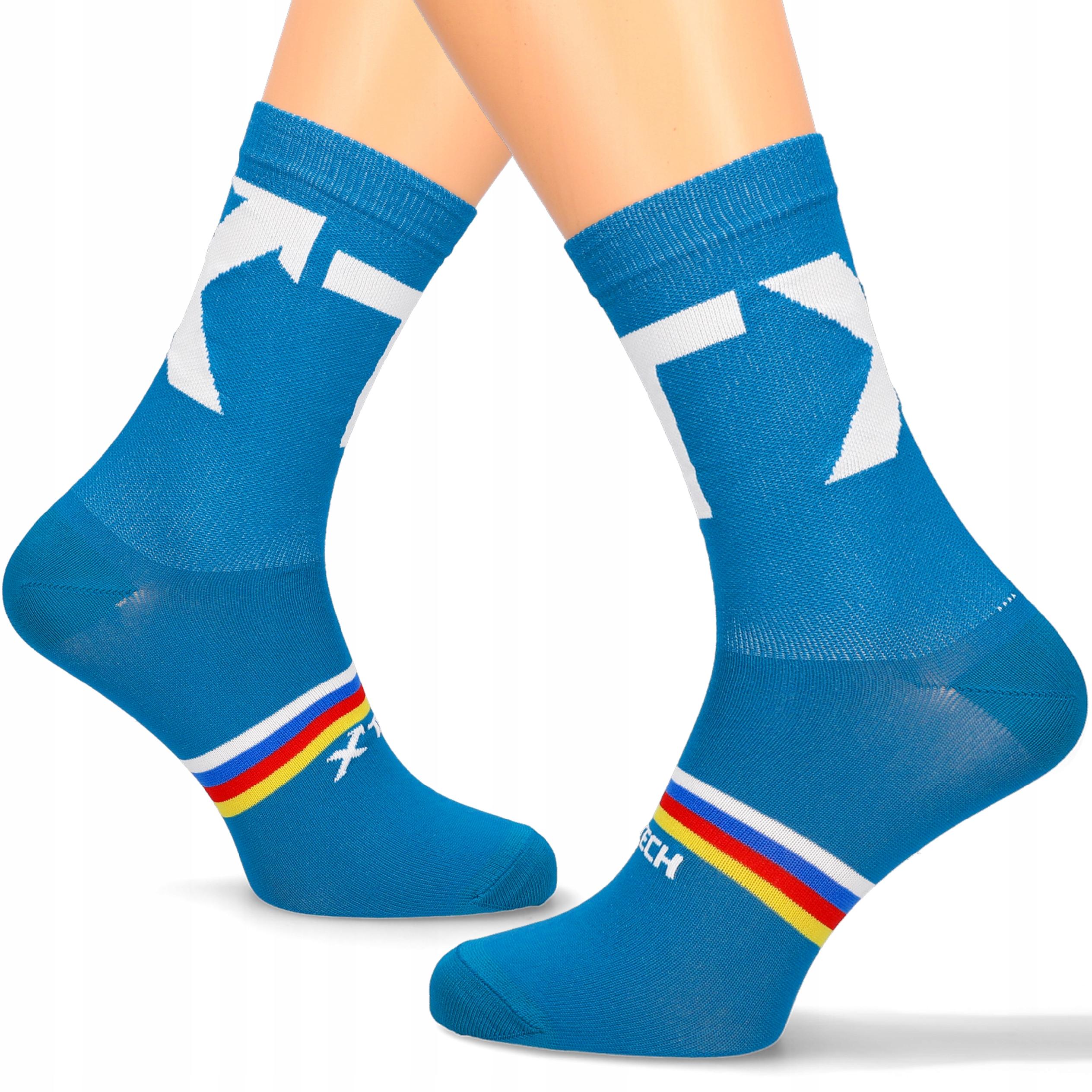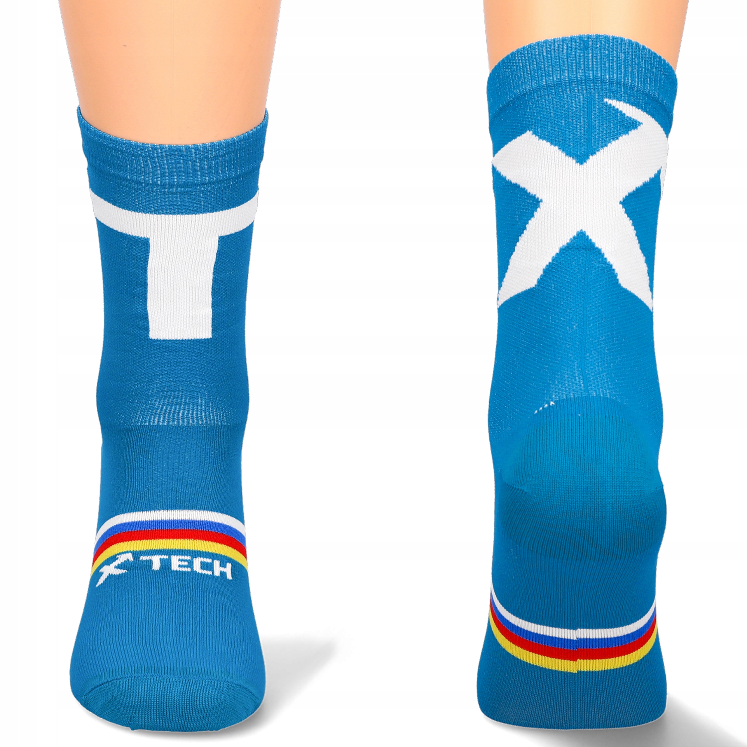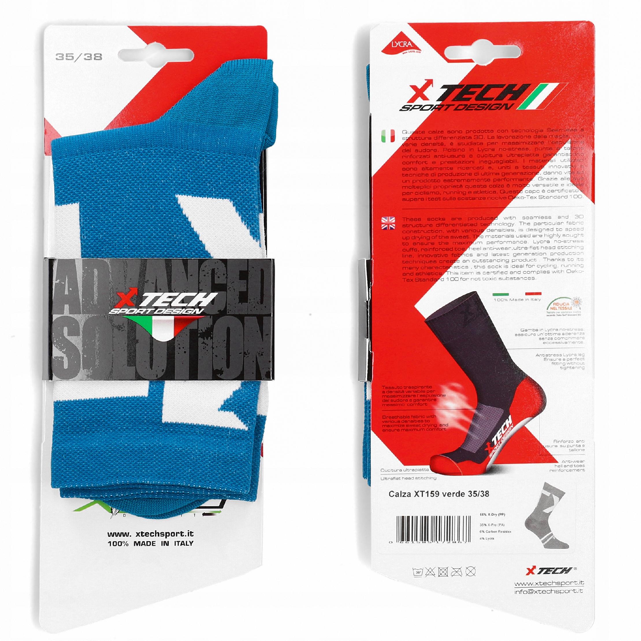 Funkcjonalne skarpety marki XTECH, model XT159, odpowiednie do noszenia w zakresie temperatur od +10°C do +40°C. Wykonane z niezwykle oddychających i miękkich w dotyku materiałów.