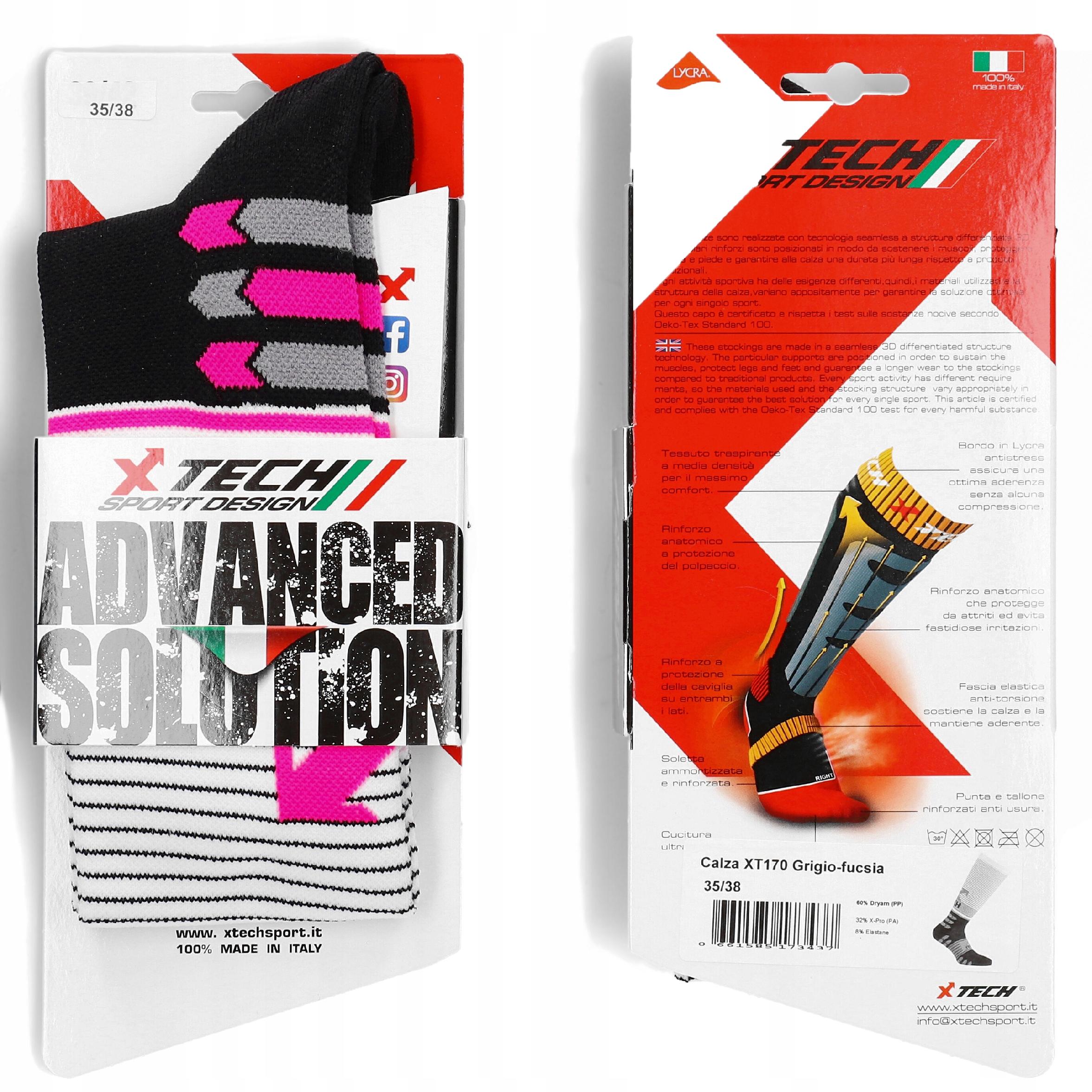 Funkcjonalne skarpety marki XTECH, przystosowane do noszenia w zakresie temperatur od +0°C do +25°C .