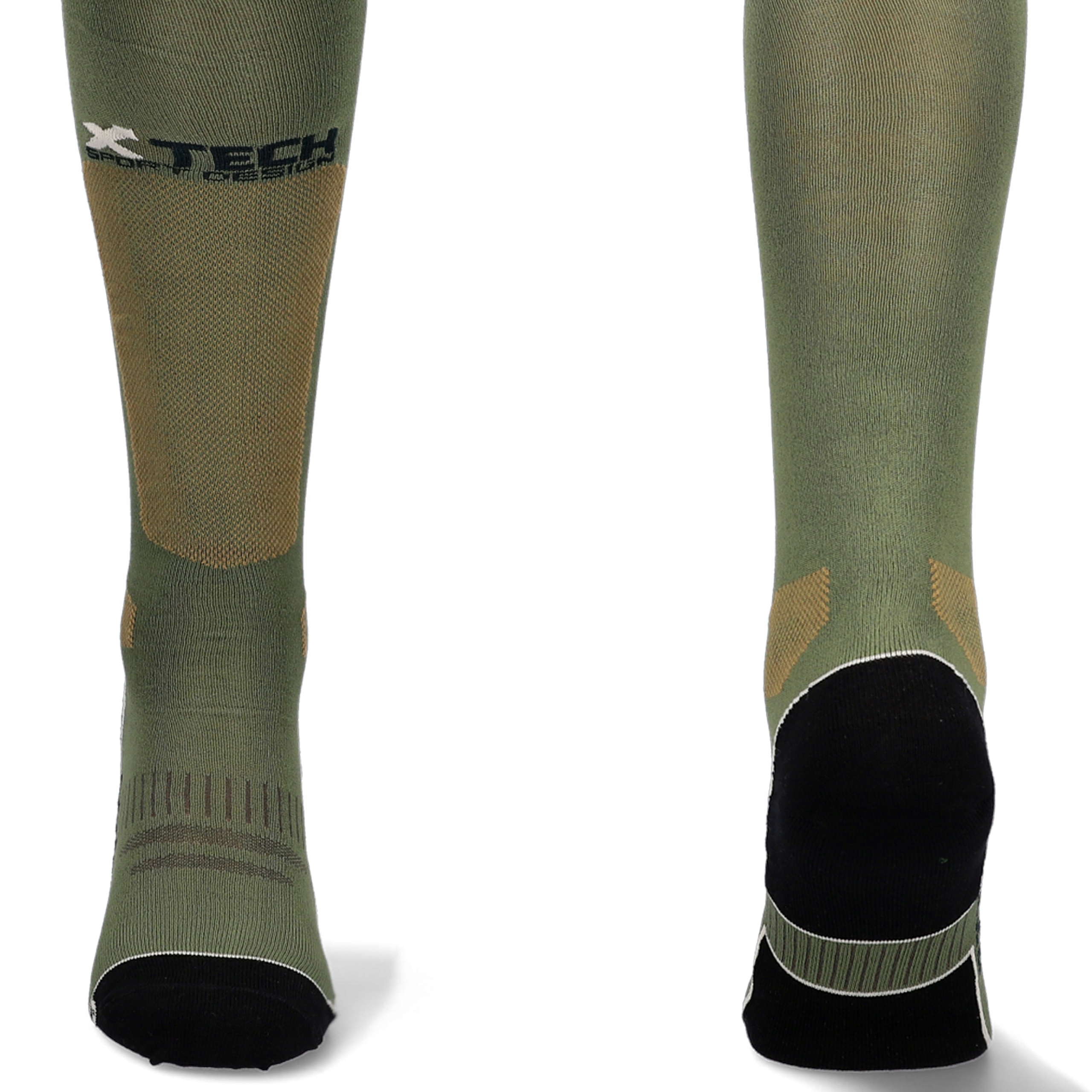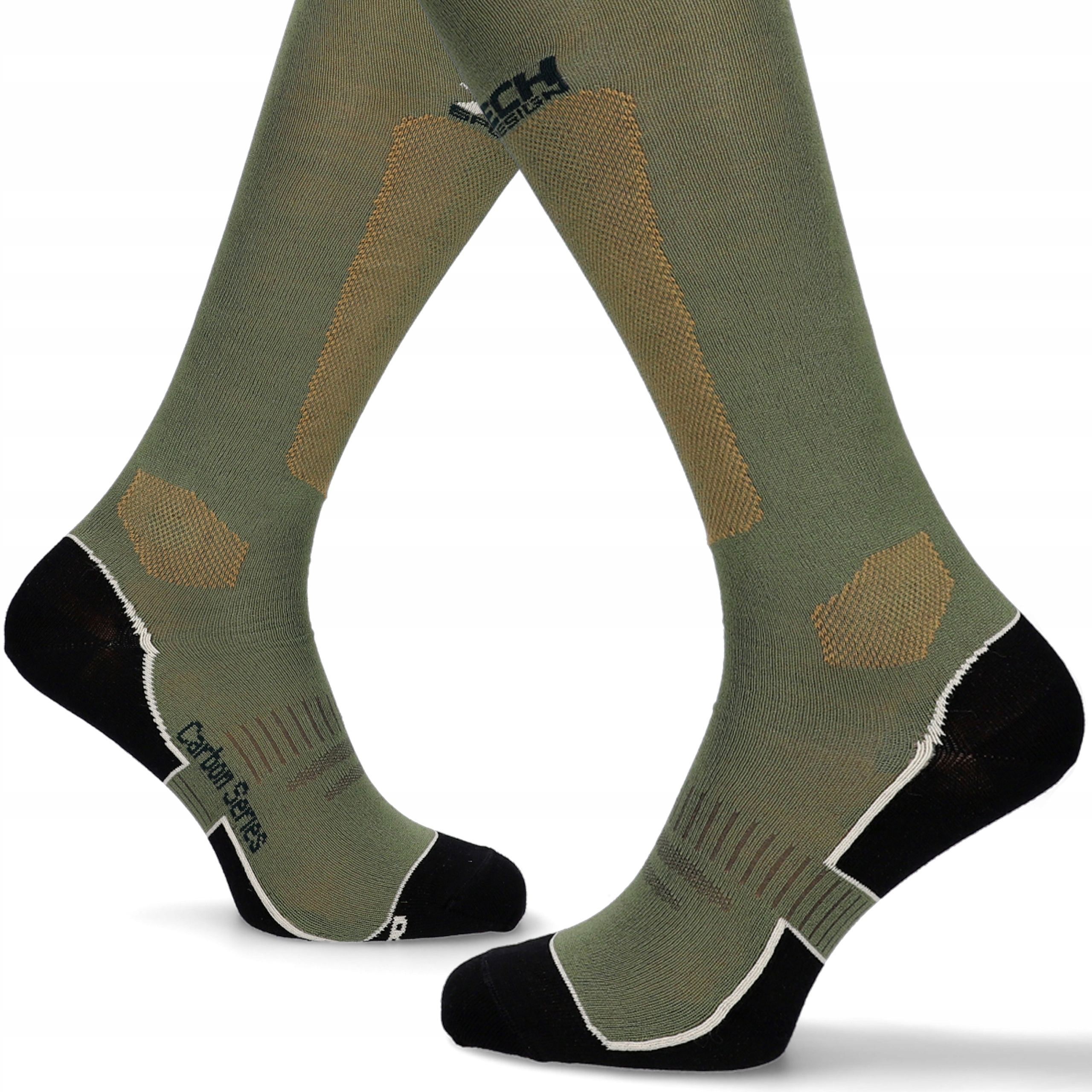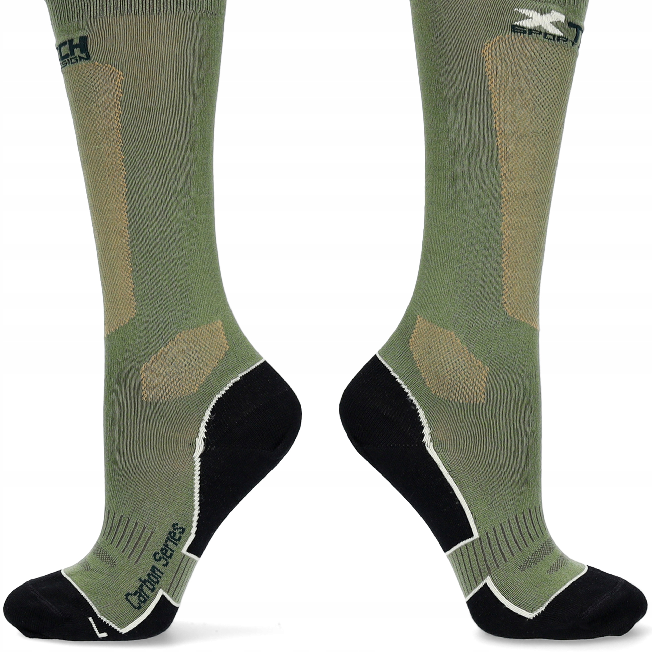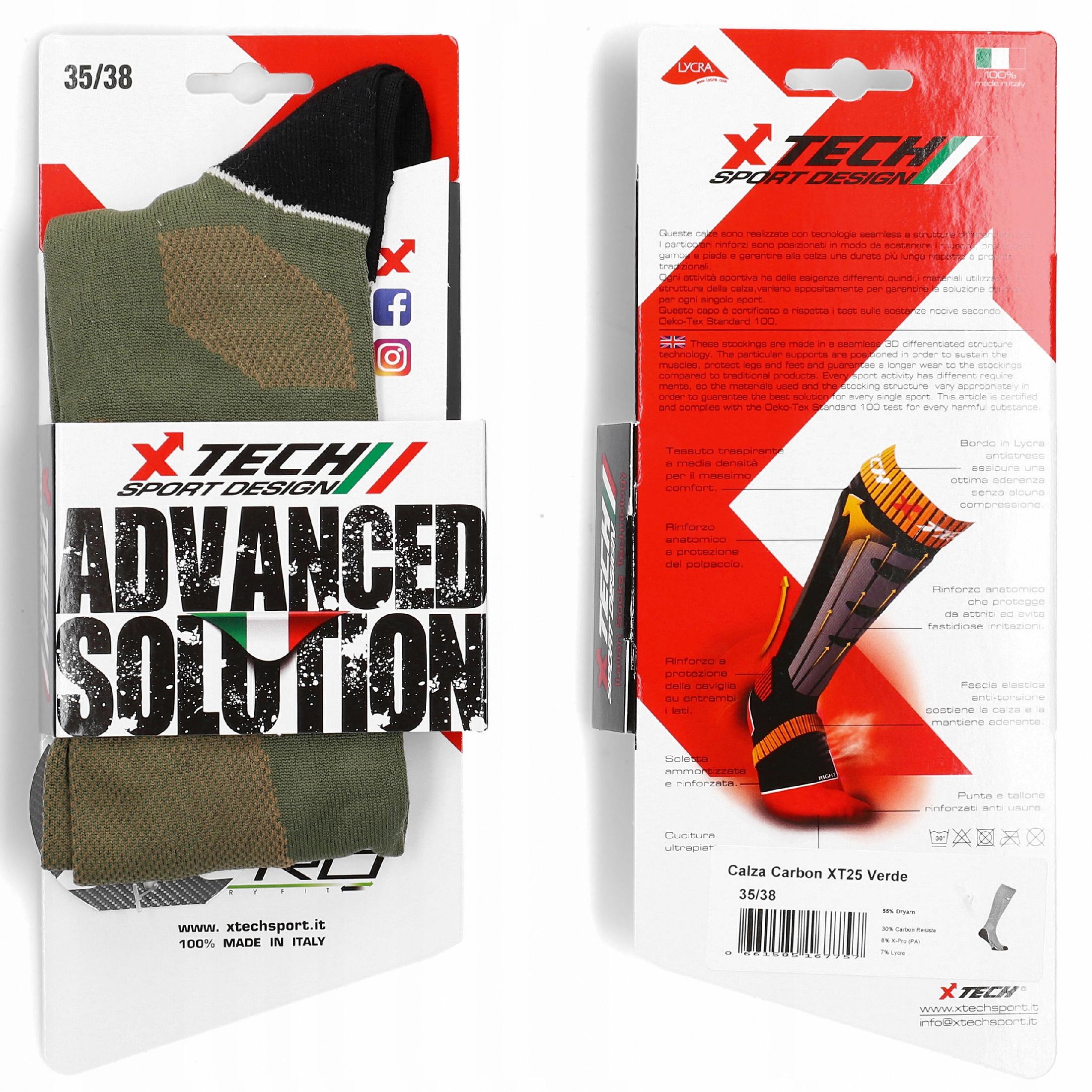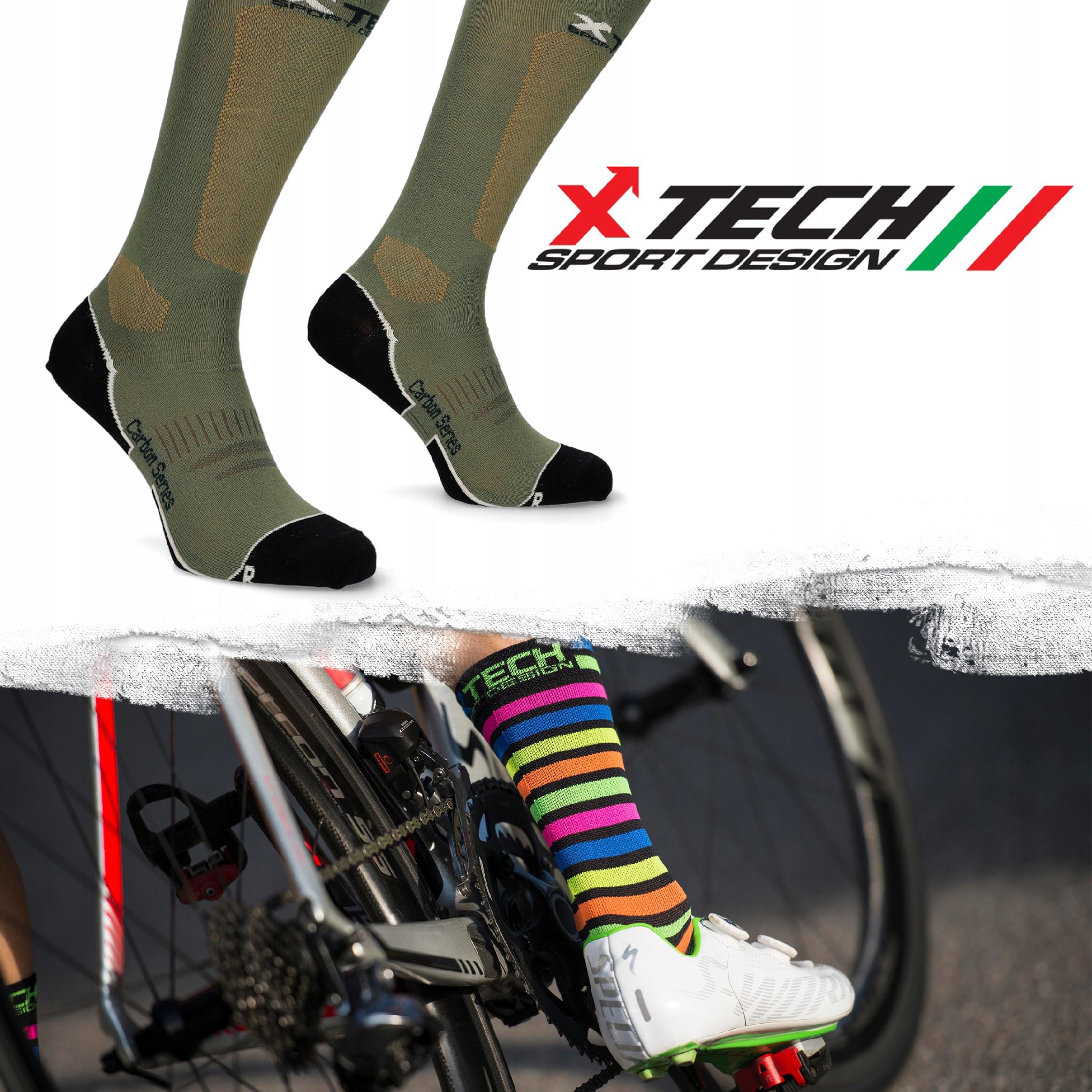 Funkcjonalne skarpety marki XTECH, model Carbon , przystosowane do noszenia w zakresie temperatur od  +0°C do +20°C .