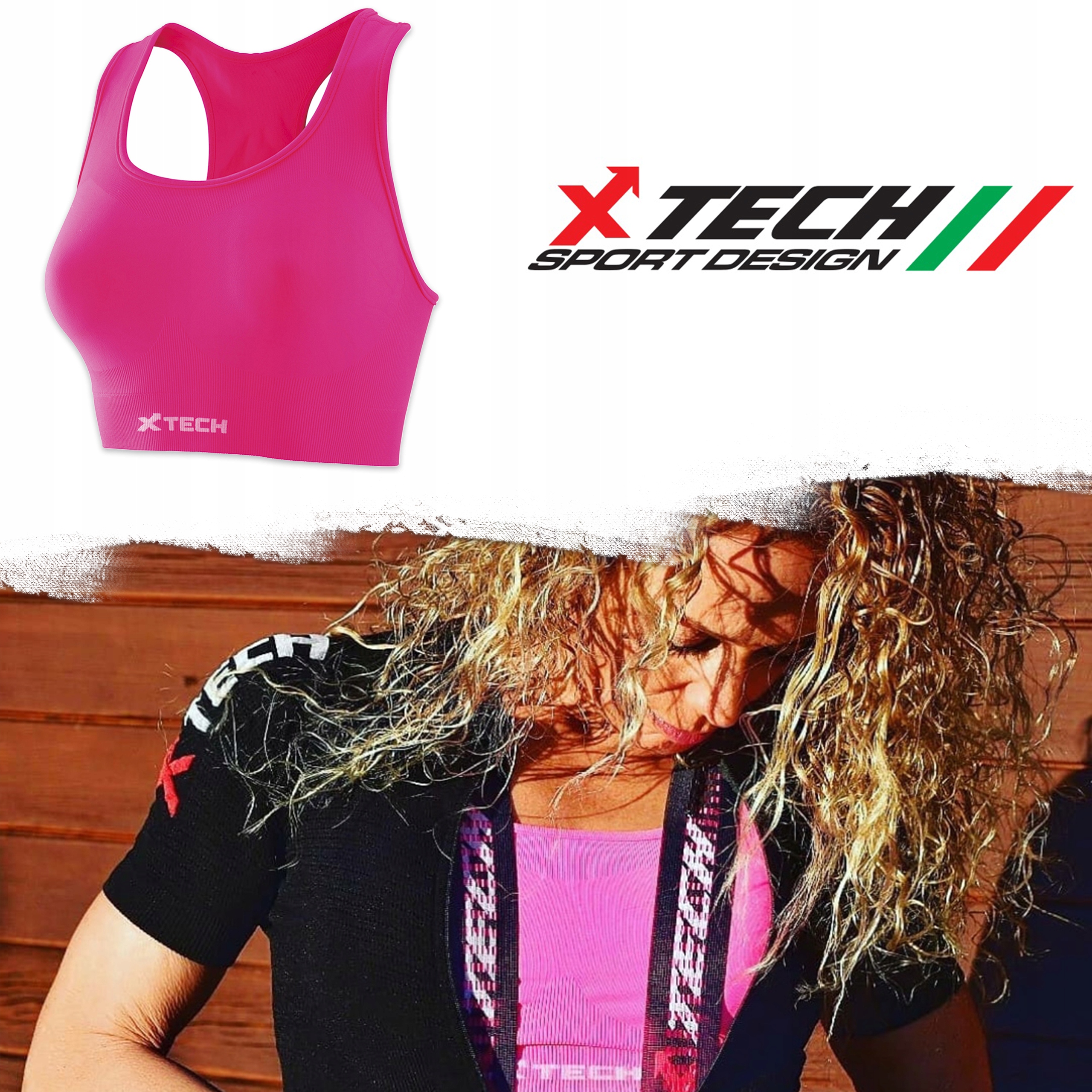Funkcjonalny biustonosz marki XTECH, model TOP DOUBLE, odpowiedni do noszenia jako bielizna podczas występów sportowych.