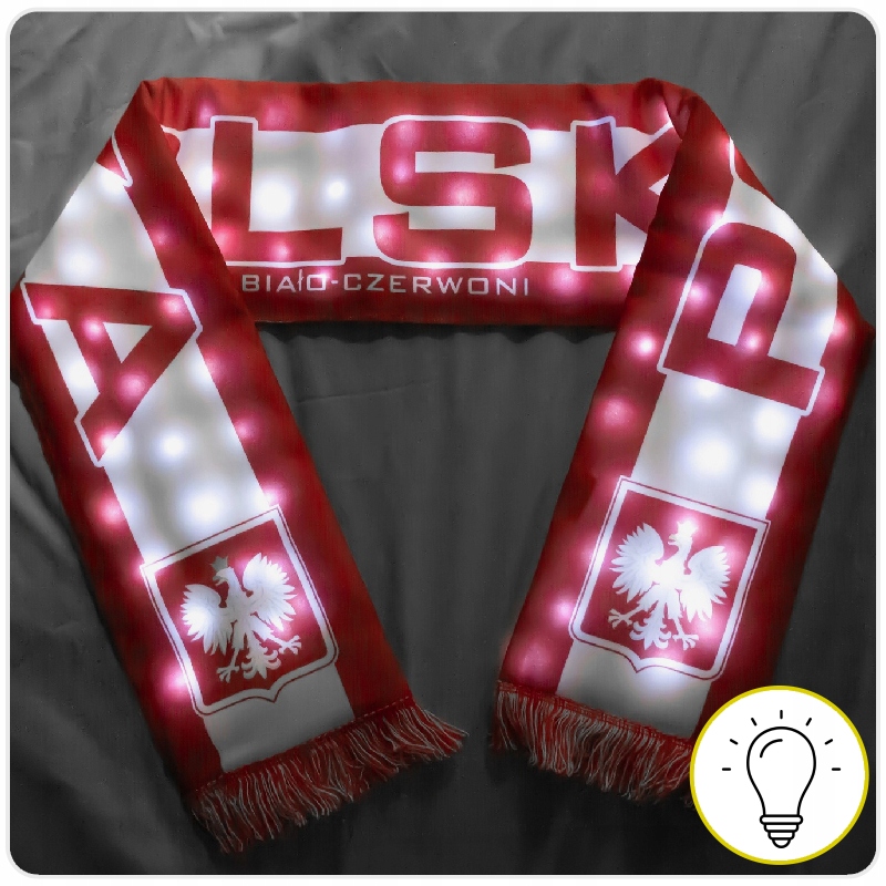 ➡️ Pokaż swoje wsparcie dla reprezentacji w wyjątkowym stylu! Szalik kibica Polska z podświetleniem LED to idealny wybór dla każdego fana. Dwustronny design i świecące elementy sprawiają, że wyróżnisz się na stadionie i podczas każdej imprezy sportowej. Ładowany przez USB, jest wygodny i ekologiczny.
